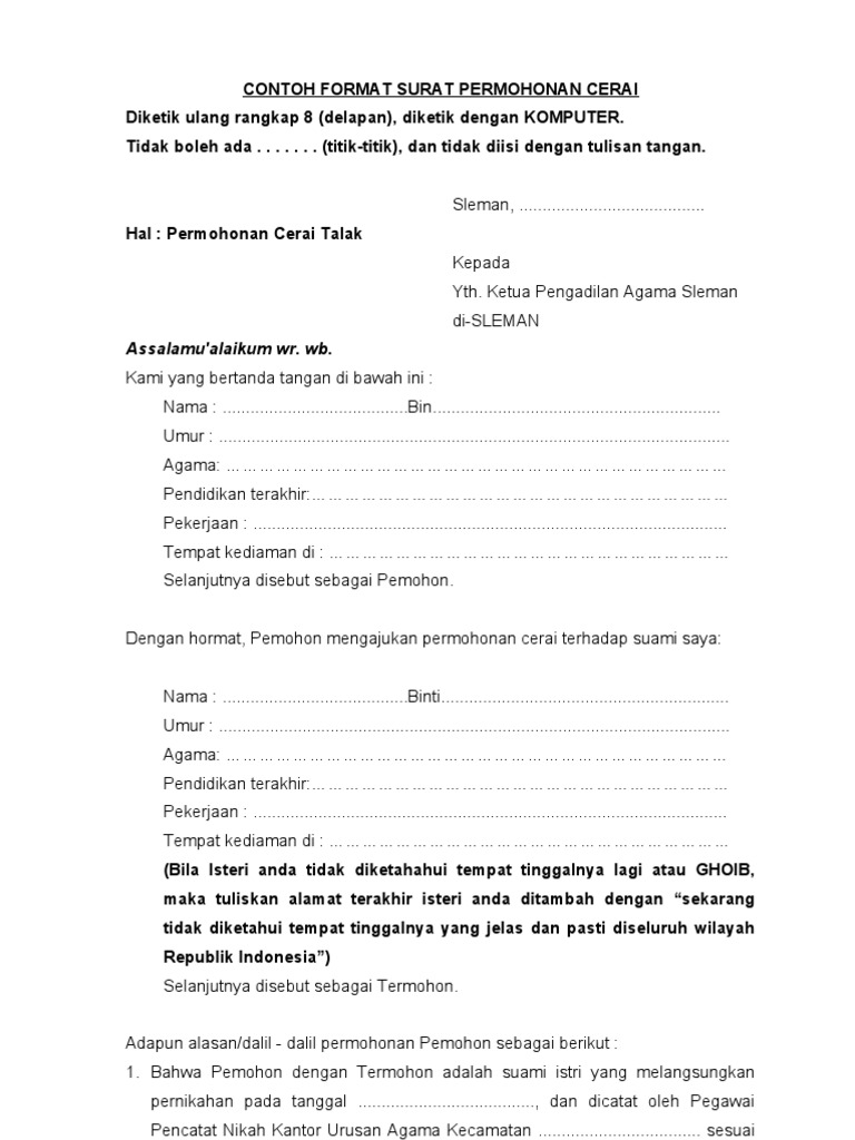 Contoh surat pernyataan mulai dari perjanjian, diri, sekolah, kesalahan, kesanggupan, kerja, hutang, dan bahasa inggris, semoga bisa membantu. Di dalam contoh permohonan ikrar talak telah diposting dengan harapan bahwa kami dapat memberi anda inspirasi untuk membuat surat pernyataan dengan baik dan benar. Ada contoh surat pernyataan kesanggupan, surat pernyataan kerja, surat pernyataan menikah, surat pernyataan sikap, dan lain sebagainya. Pdf contoh form permohonan cerai talak muhammad joko. Ada contoh surat pernyataan kesanggupan, surat pernyataan kerja, surat pernyataan menikah, surat pernyataan sikap, dan lain sebagainya.